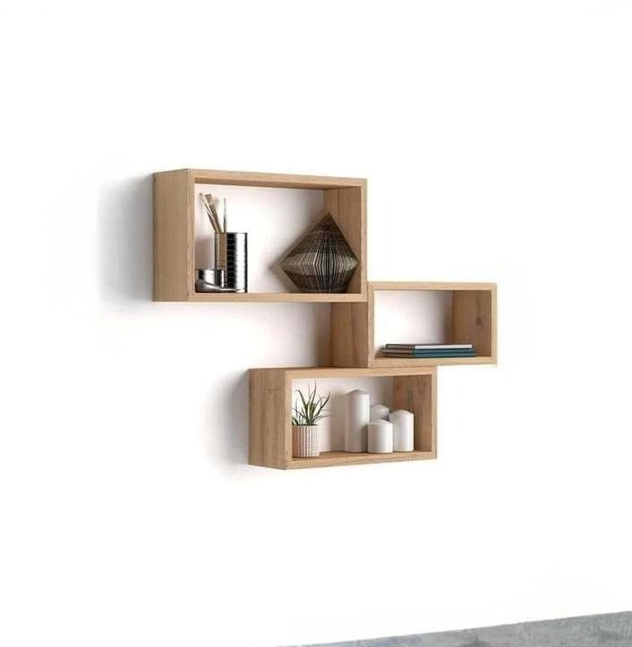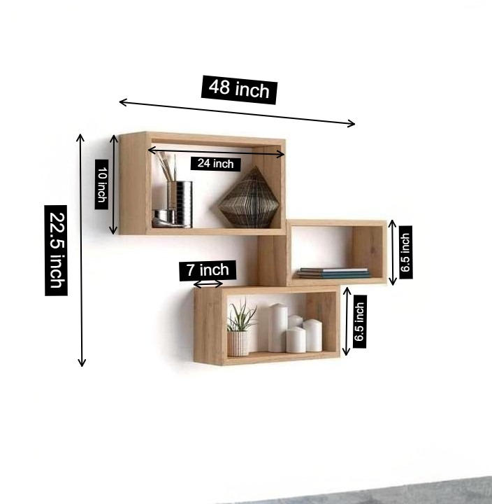 Elevate your wall decor with this modern floating wall shelf set. Crafted from high-quality MDF with a natural wood finish, the unique staggered geometric design adds a contemporary touch while providing ample display space — perfect for living rooms, bedrooms, offices, or study areas.