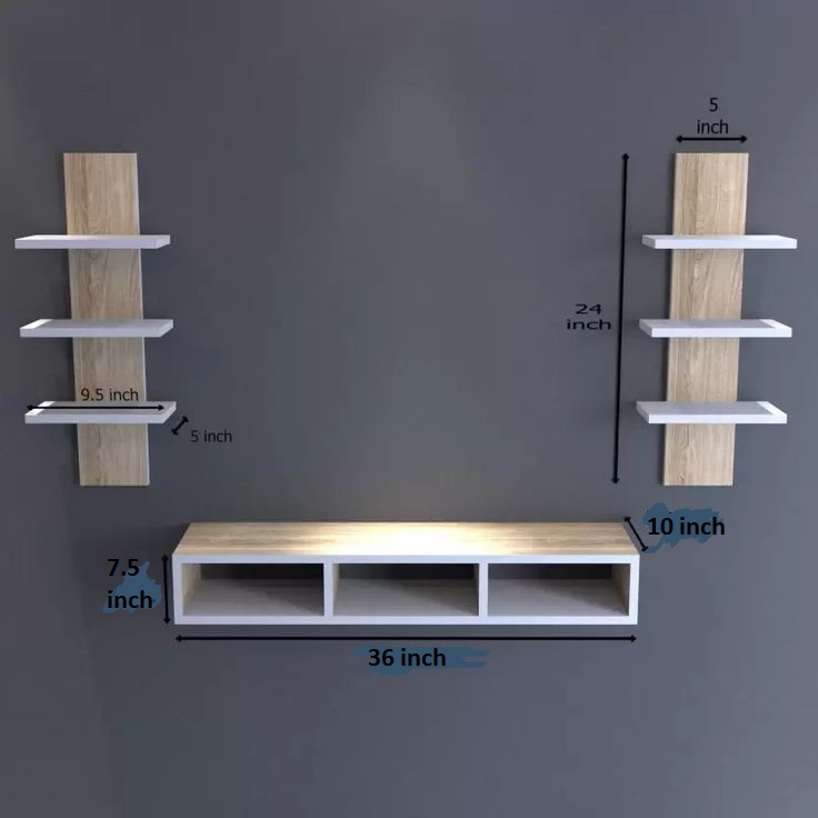 - Number of shelves per unit: 3 floating shelves