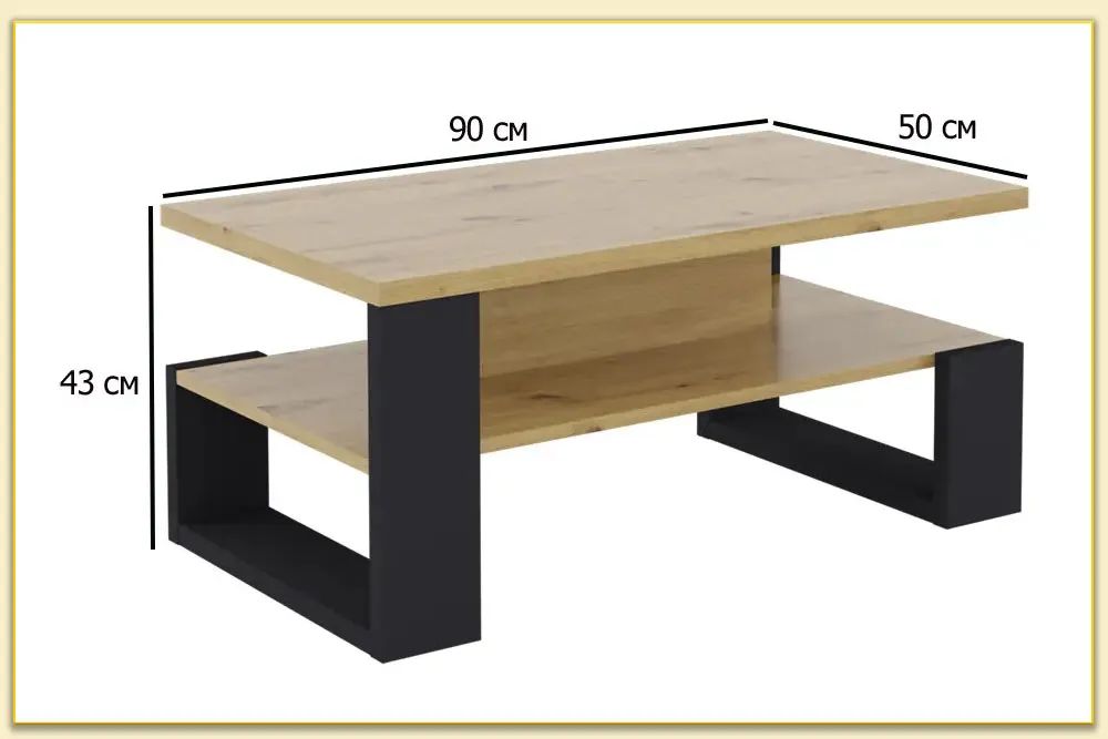 Embrace modern simplicity with this two-tier coffee table. Its clean design features a warm light wood finish and sleek black supports, offering both style and practical storage. The perfect centerpiece to elevate your living room with Scandinavian-inspired elegance.