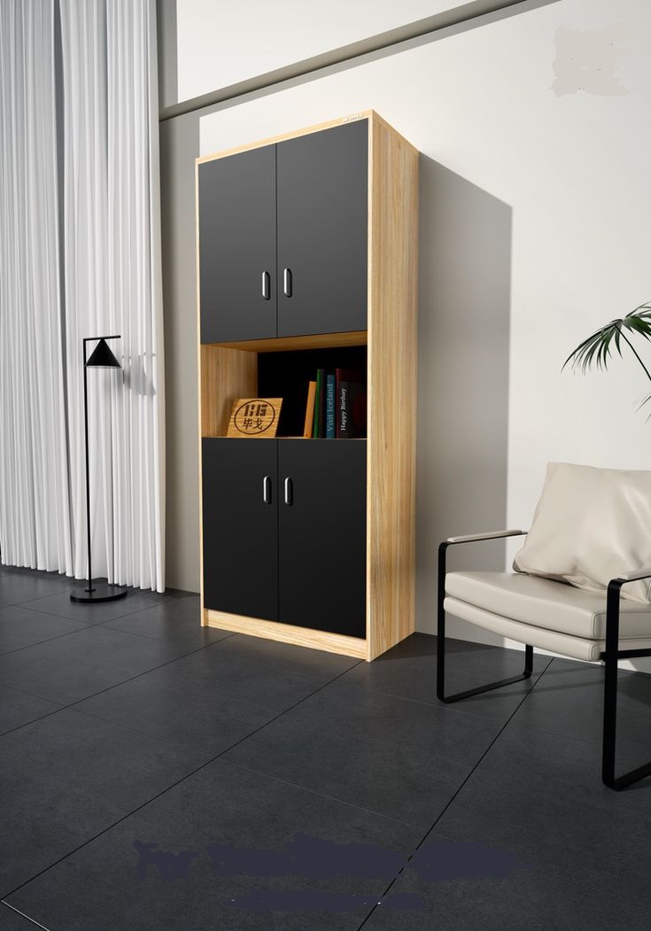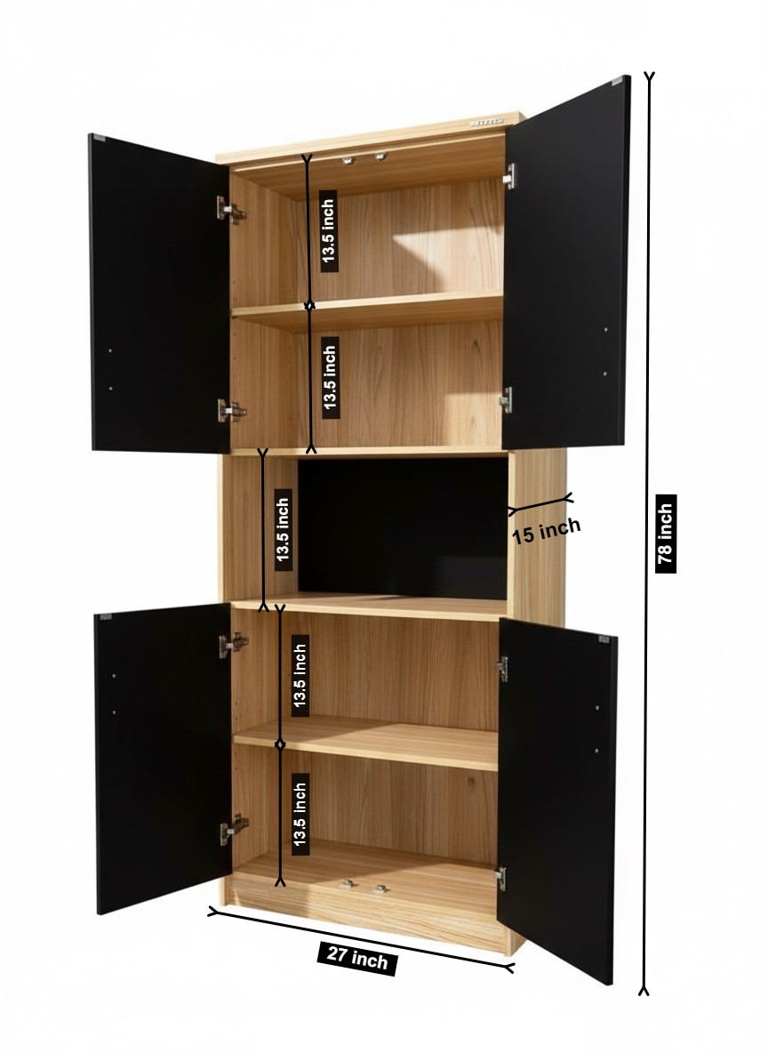Elevate your home or office storage with this modern tall cabinet featuring a sleek combination of open shelving and concealed compartments. Crafted from high-quality engineered wood with a natural oak finish and contrasting black doors, the versatile design offers ample storage and display space — perfect for living rooms, bedrooms, dining areas, or study spaces.