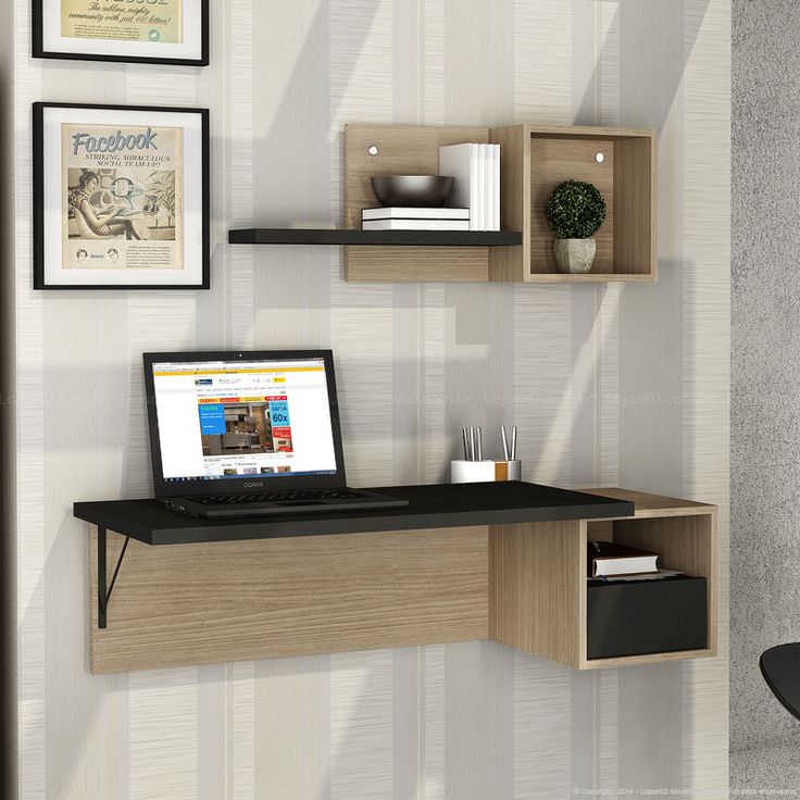 Modern Wall-Mounted Floating Desk with Shelves – Wood & Black