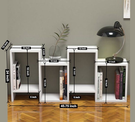 - Unique modern geometric design with varying shelf heights for visual interest and better organization