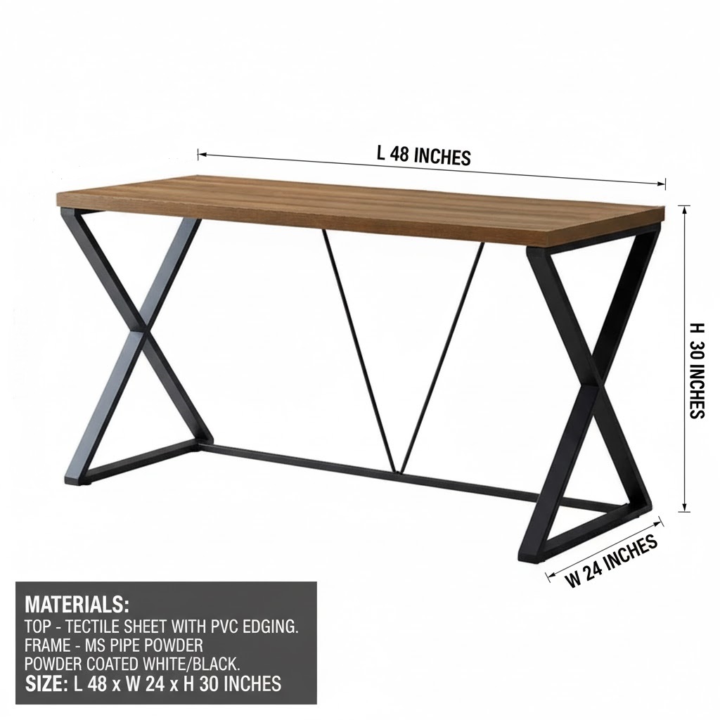 Product Description: Elevate your workspace with the X-Frame Industrial Study Table, a perfect fusion of modern design and structural integrity. Featuring a spacious MDF tabletop with a smooth, textured finish and a robust cross-braced steel frame, this desk delivers exceptional stability and contemporary styleiveness. Ideal for home offices, study areas, or professional environments requiring both form and function.